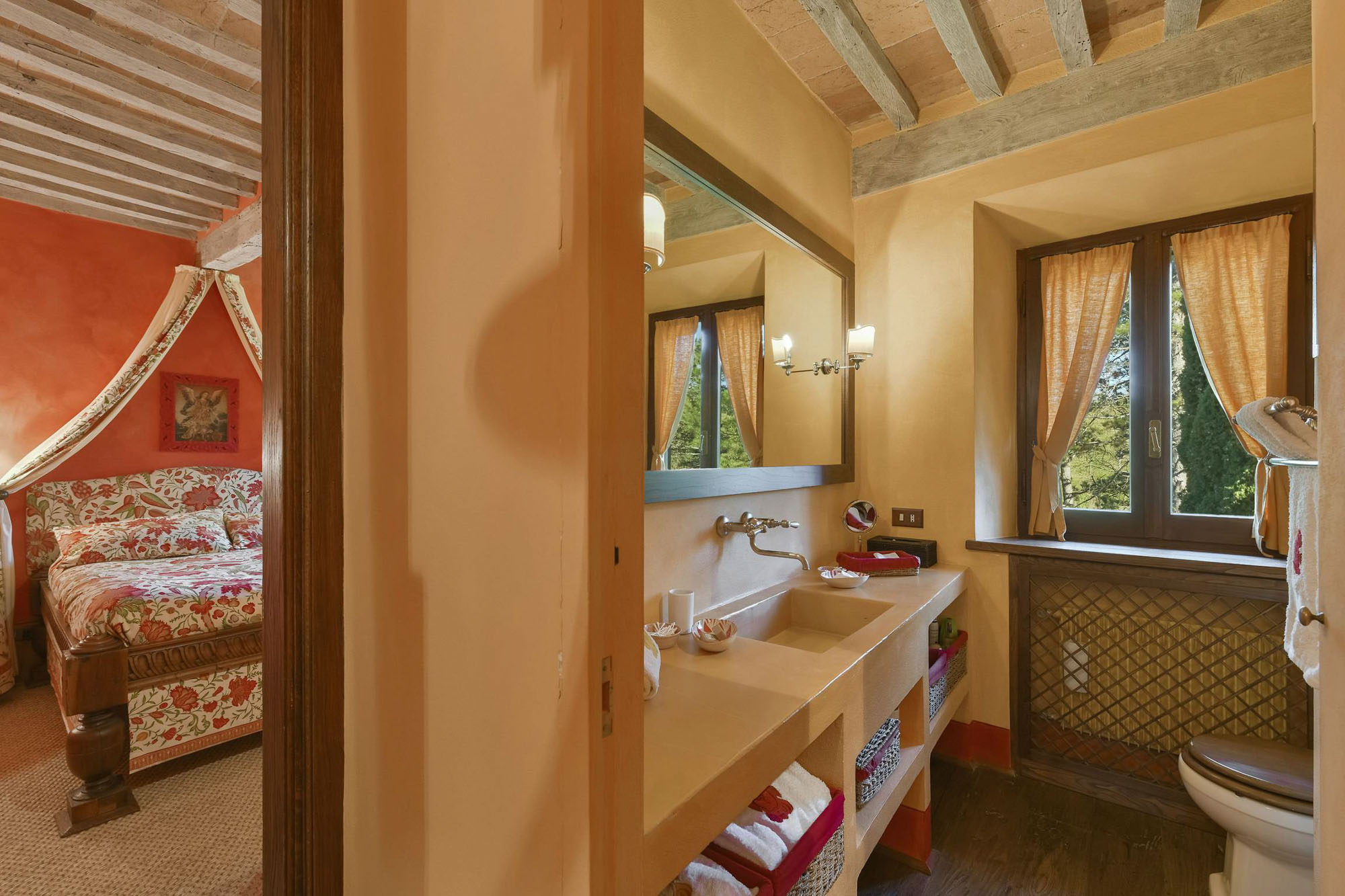 Wonderful views of the rolling landscape and Mount Amiata give a real sense of space and timelessness. The Medieval village of San Casciano dei Bagni, where you can bathe in the thermal springs, is just a few minutes drive away.