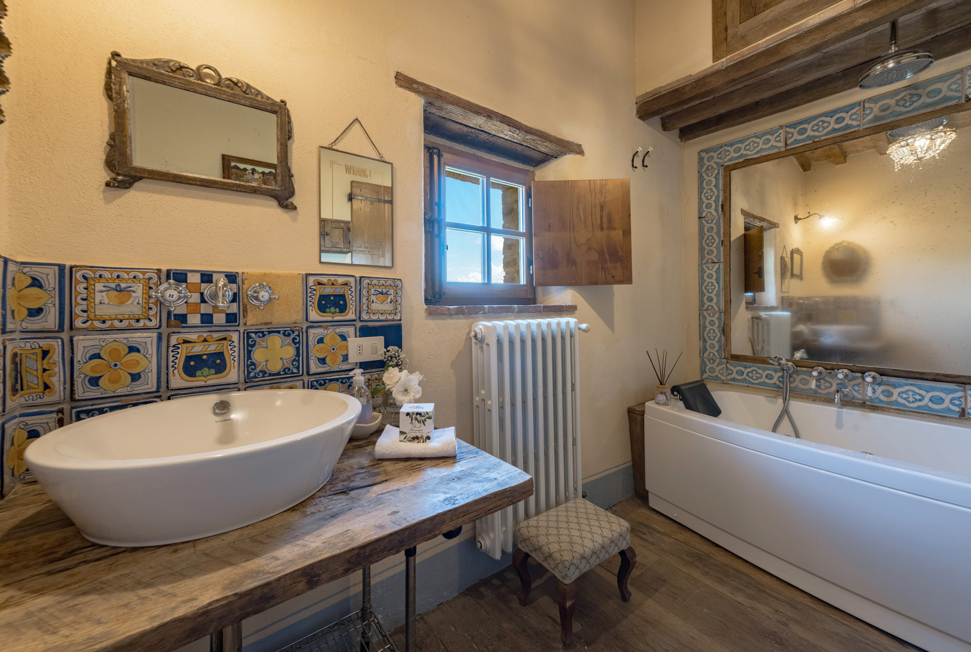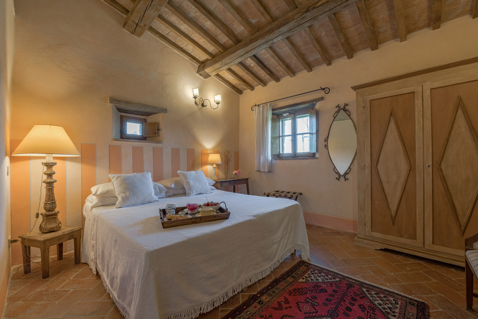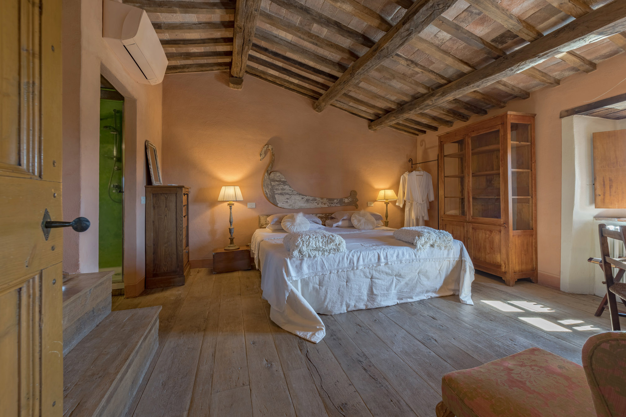 The villa perfectly combines traditional rustic features and modern amenities, including air conditioning, Wi-Fi, a gym, and a heated swimming pool. With 360-degree breath-taking views, it’s an ideal getaway for large groups or families looking to experience authentic Tuscany, whether soaking up the tranquillity of the villa or exploring the wider region.