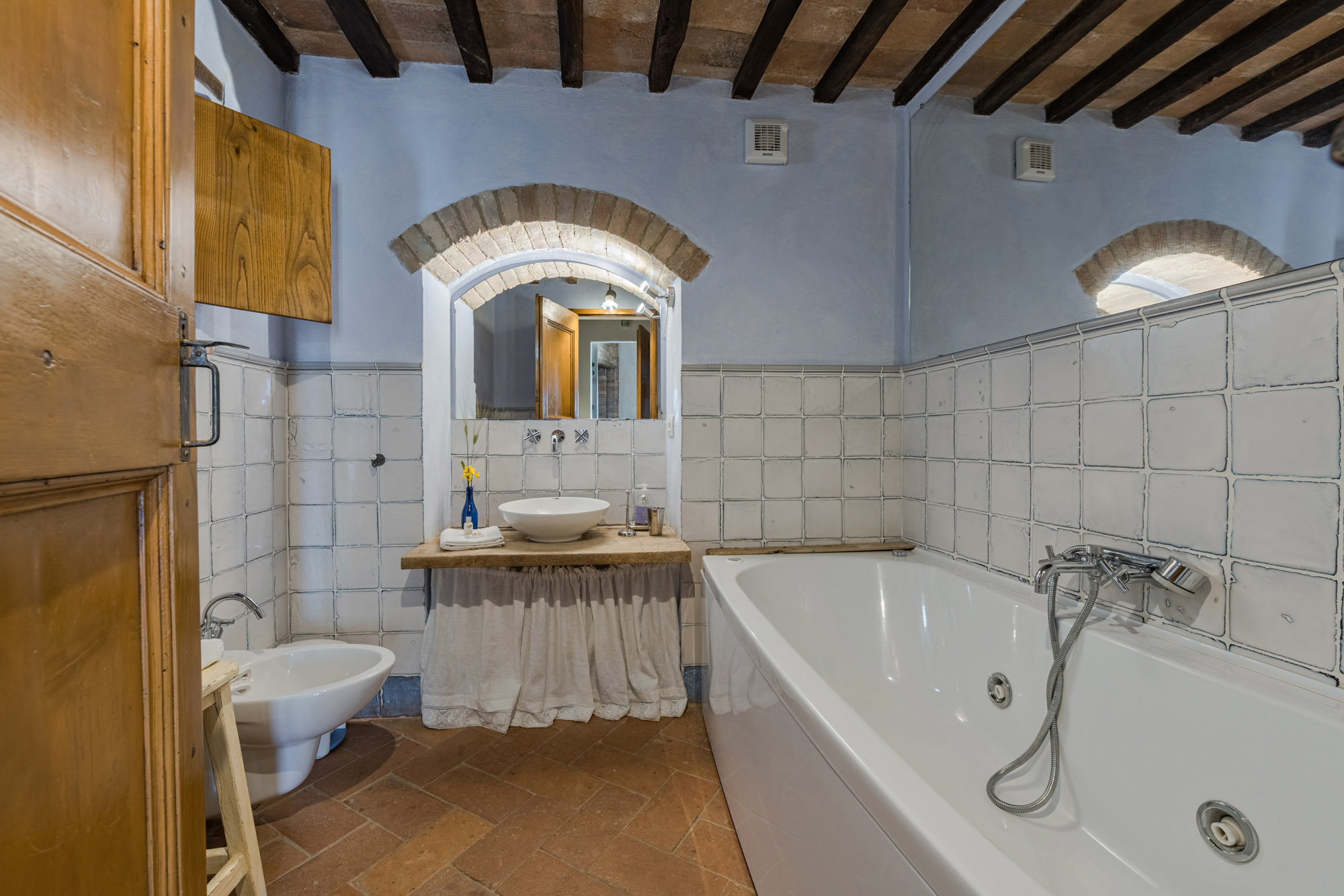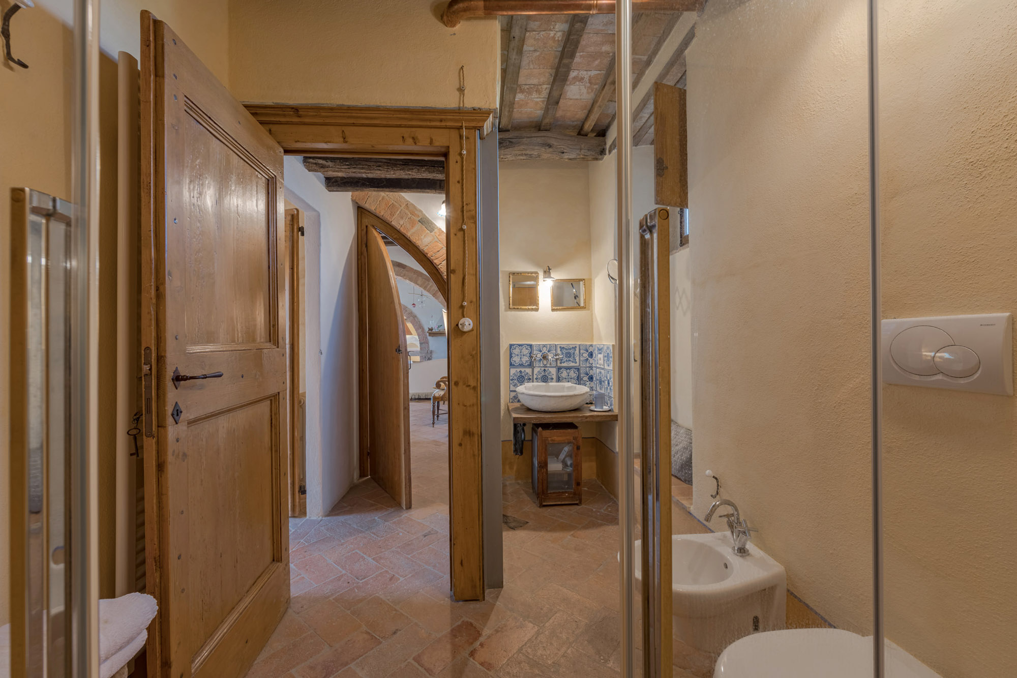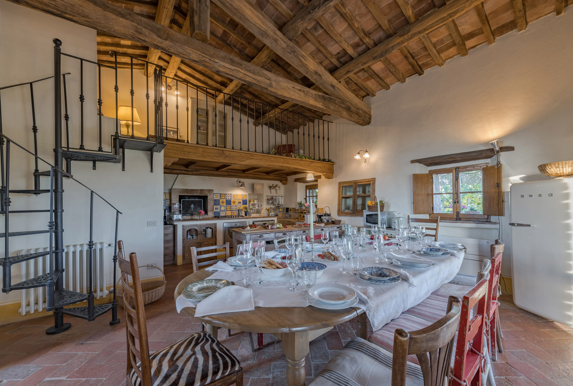 The villa perfectly combines traditional rustic features and modern amenities, including air conditioning, Wi-Fi, a gym, and a heated swimming pool. With 360-degree breath-taking views, it’s an ideal getaway for large groups or families looking to experience authentic Tuscany, whether soaking up the tranquillity of the villa or exploring the wider region.