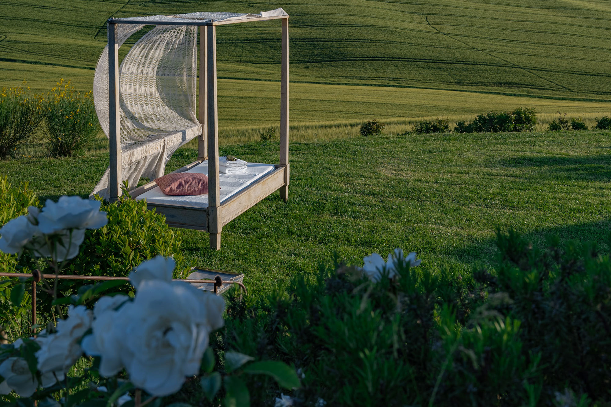 There's a culinary garden planted with herbs for guests to use and an 18-meter saltwater swimming pool with sun beds on the surrounding lawns. Table tennis and various seating options are also spaced around the large lawns. There's also a gym with one end for Pilates or yoga and a massage bed. A therapist, yoga teacher, or personal trainer can be arranged on request, as can a chef, for an additional fee.
