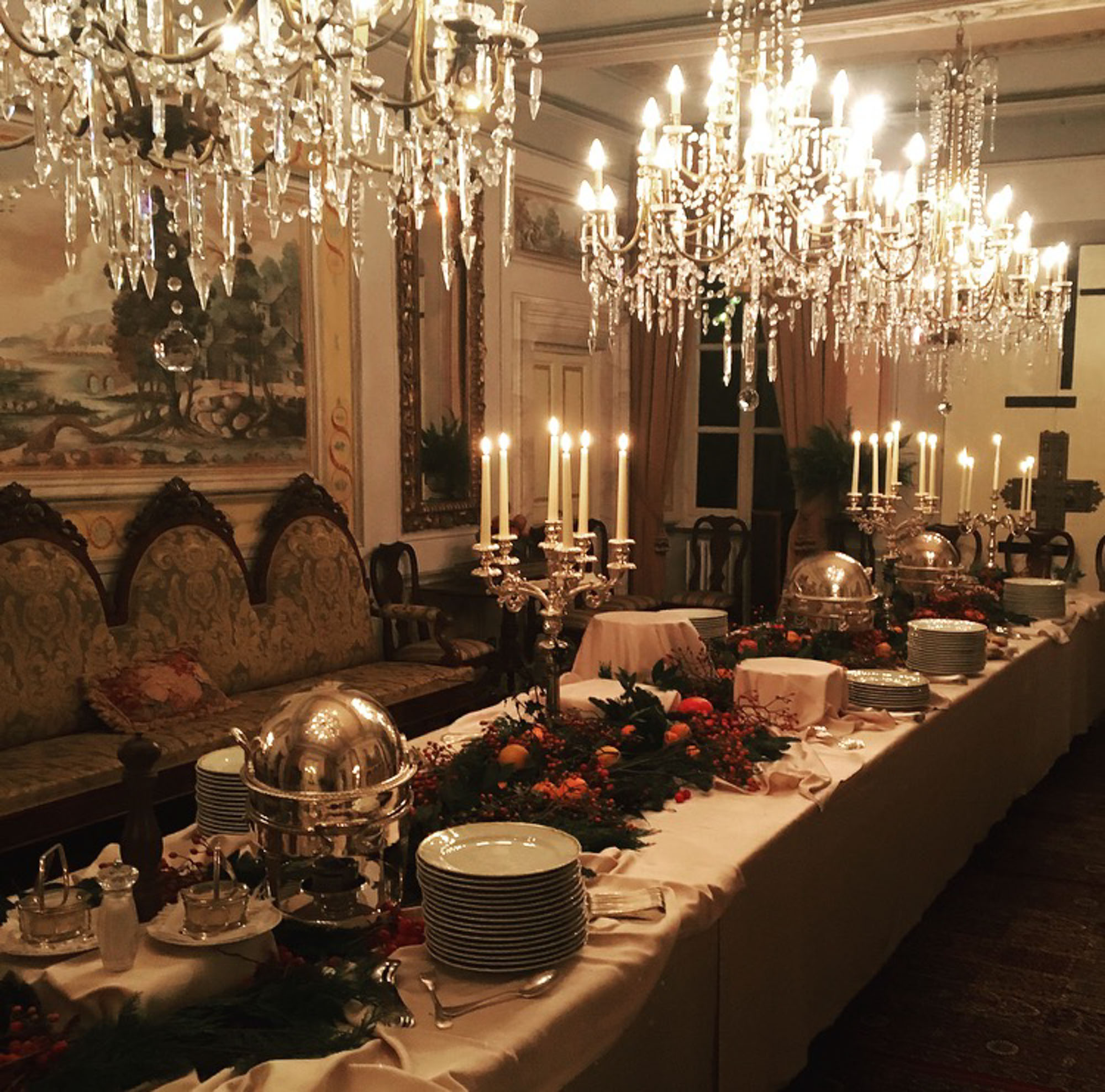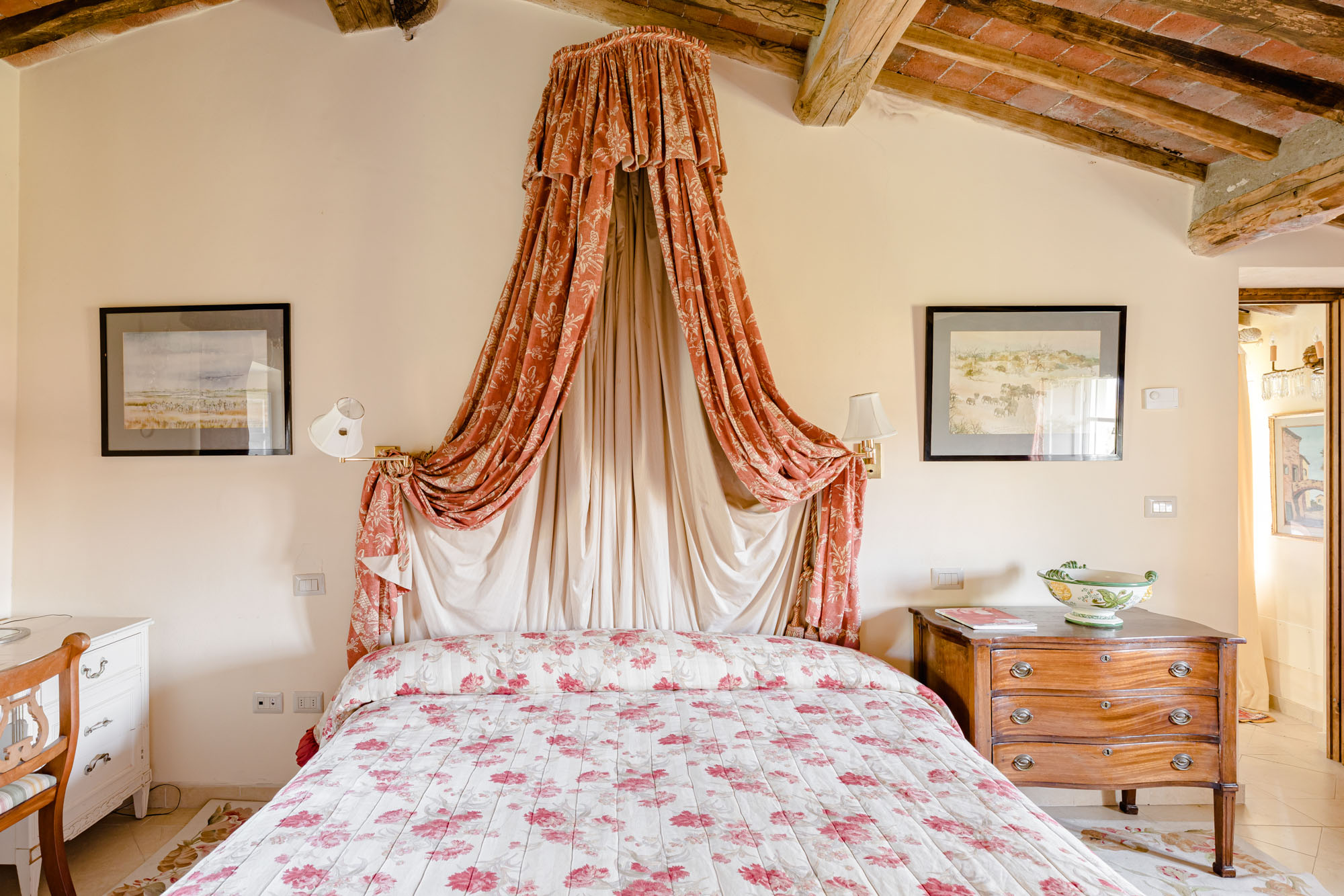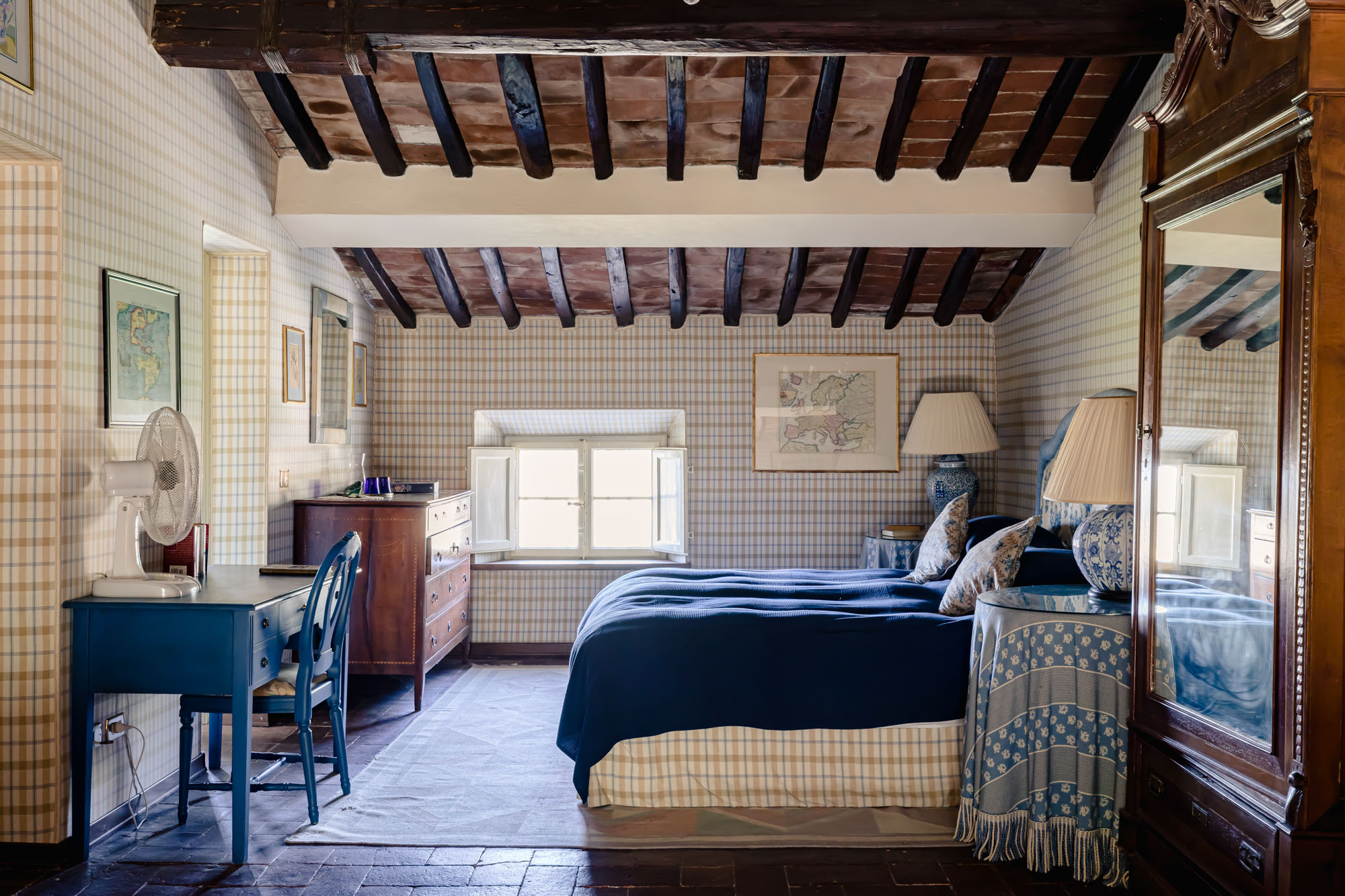 The property sleeps up to 35 guests across 2 buildings. The main house has 12 colourful bedrooms and 11 bathrooms, and the guest house, just a few metres away, has 5 en-suite rooms. The property has several beautiful reception rooms, a drawing room with a piano, a large game room, and a TV room. However, the highlight is the grand dining room, which seats 32 and is adorned with original frescoes and antique Venetian chandeliers.